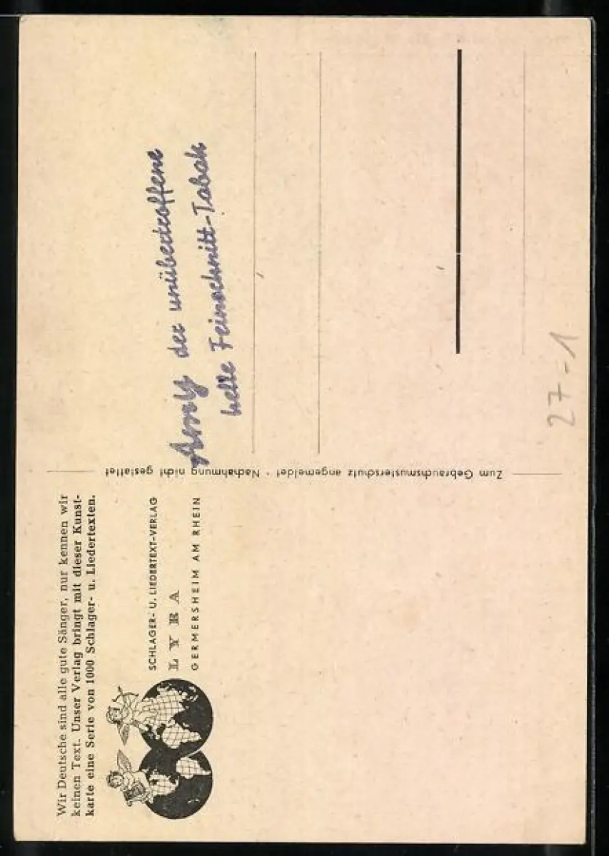 Ein Angebot in Ansichtskarten Musik: Liedkarten - 770 weitere Angebote in dieser Kategorie