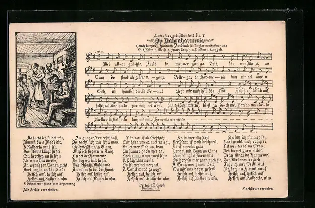 AK Lied in erzgebirgischer Mundart Da Balg`nharmenie