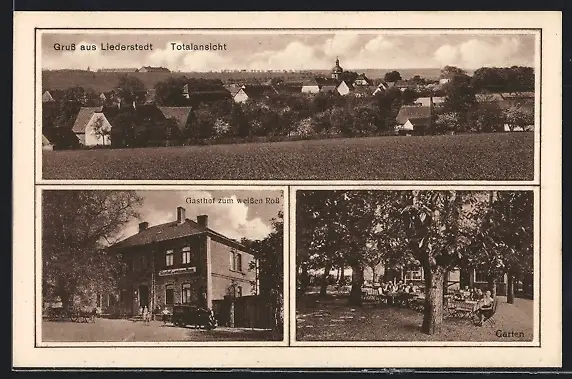 AK Liederstedt, Totalansicht, Gasthof zum weissen Ross, Garten
