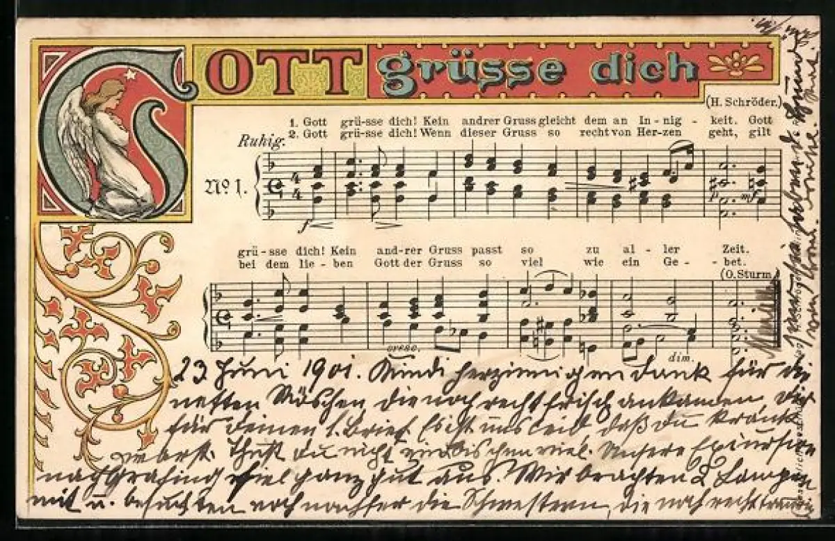 AK Liedtext und Musiknoten Gott grüsse dich mit Engel, Jugendstil