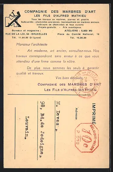 AK Liége, Compagnie des Marbres d`Art Les Fils d`Alfred Mathieu, un cheminée