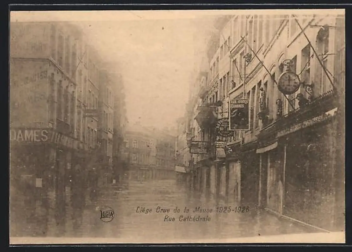 AK Liége, Crue de la Meuse 1925-1926, Rue Cathédrale