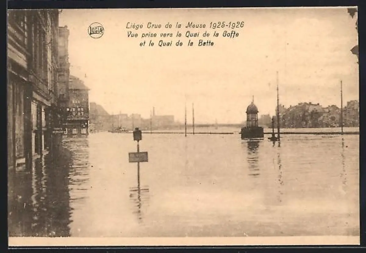 AK Liége, Crue de la Meuse 1925-1926, Vue prise vers le Quai de la Goffe