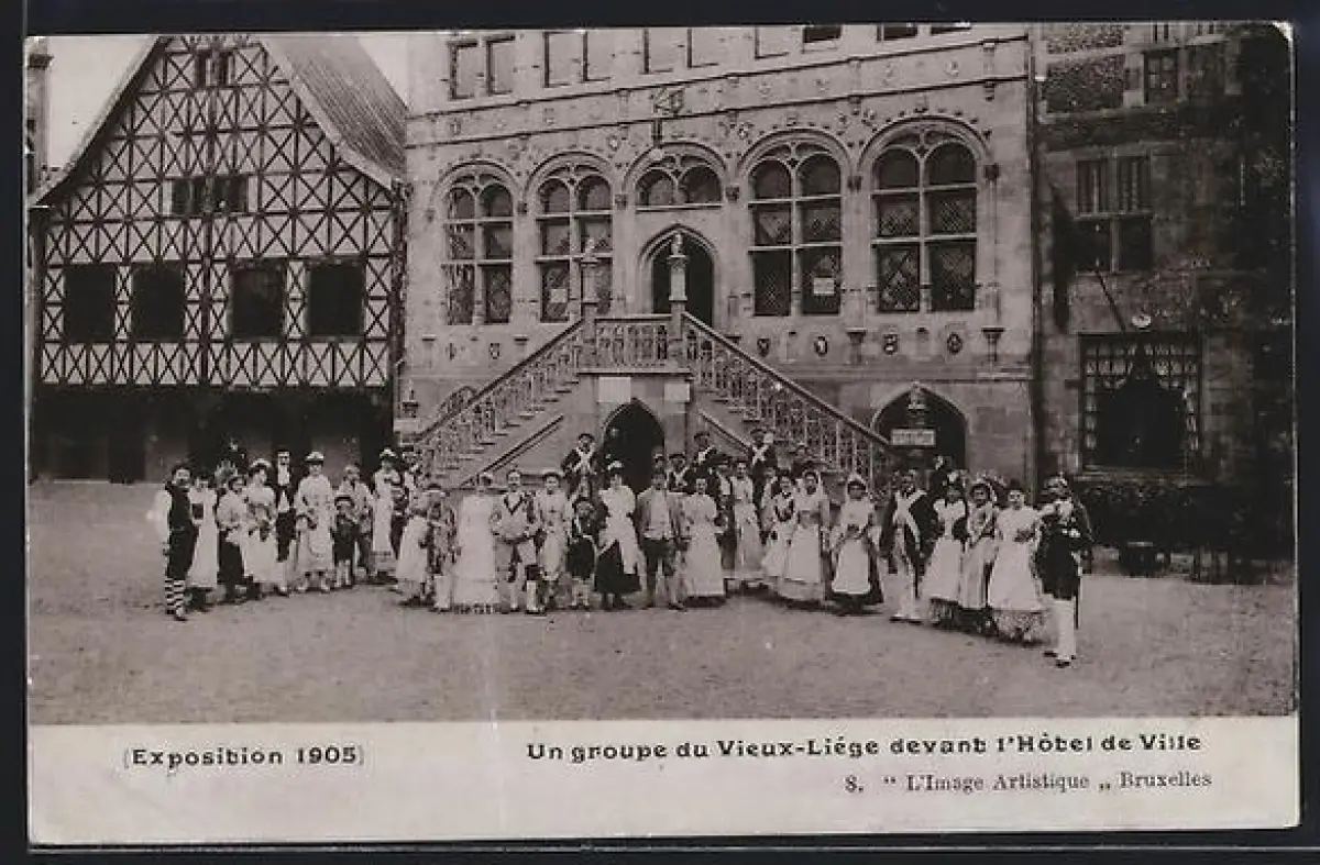 AK Liége, Exposition 1905, Un groupe du Vieux-Liége devant l`Hotel de Ville