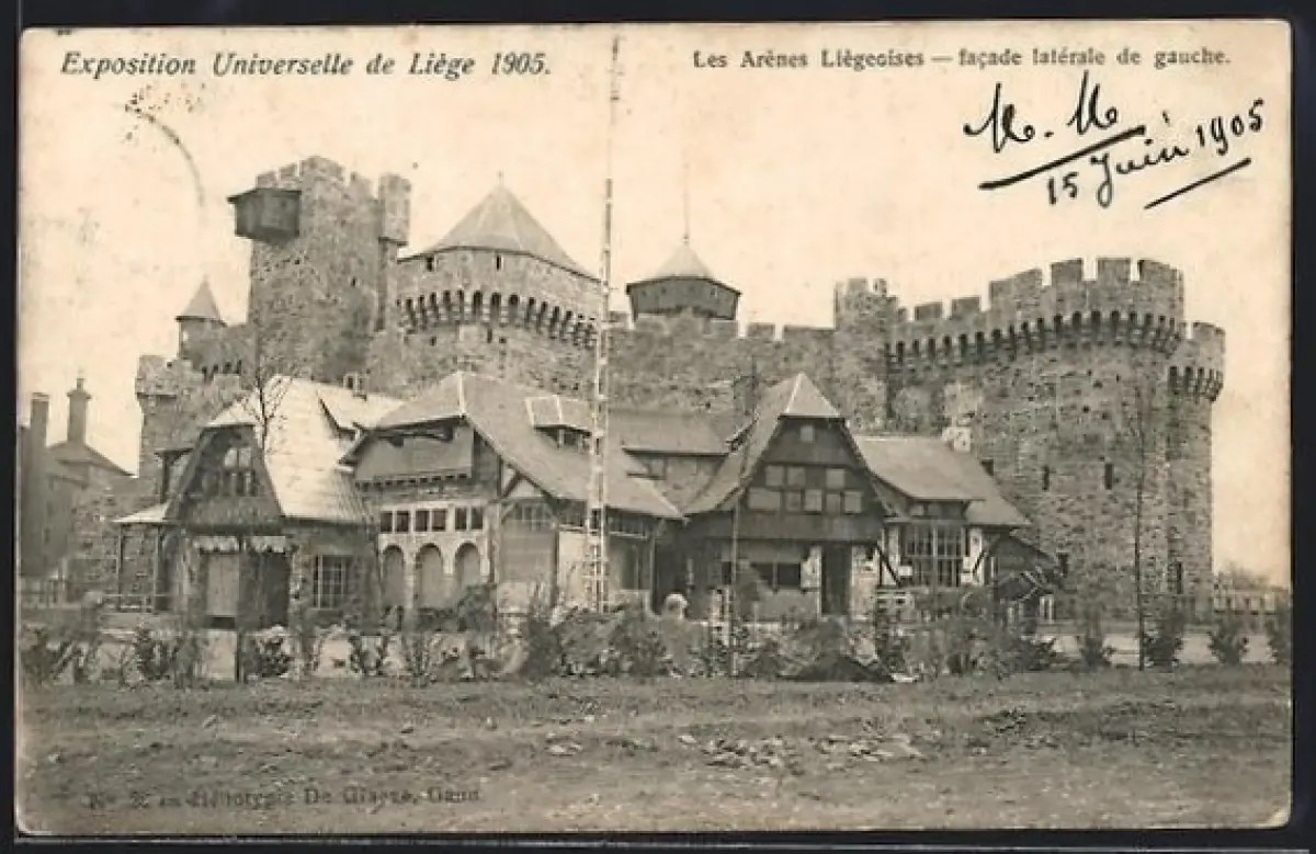 AK Liège, Exposition Universelle 1905, Les Arènes Liègoises, Facade latérale de gauche