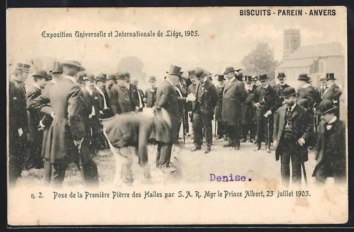 AK Liége, Exposition Universelle et Internationale 1905, Pose de la Premiere Pierre des Halles, Prince Albert, 1903