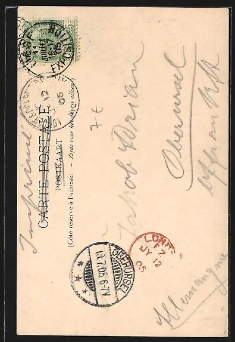 alte Ansichtskarte, gelaufen 1905, Stempelspur, Eckknick links unten, guter Zustand