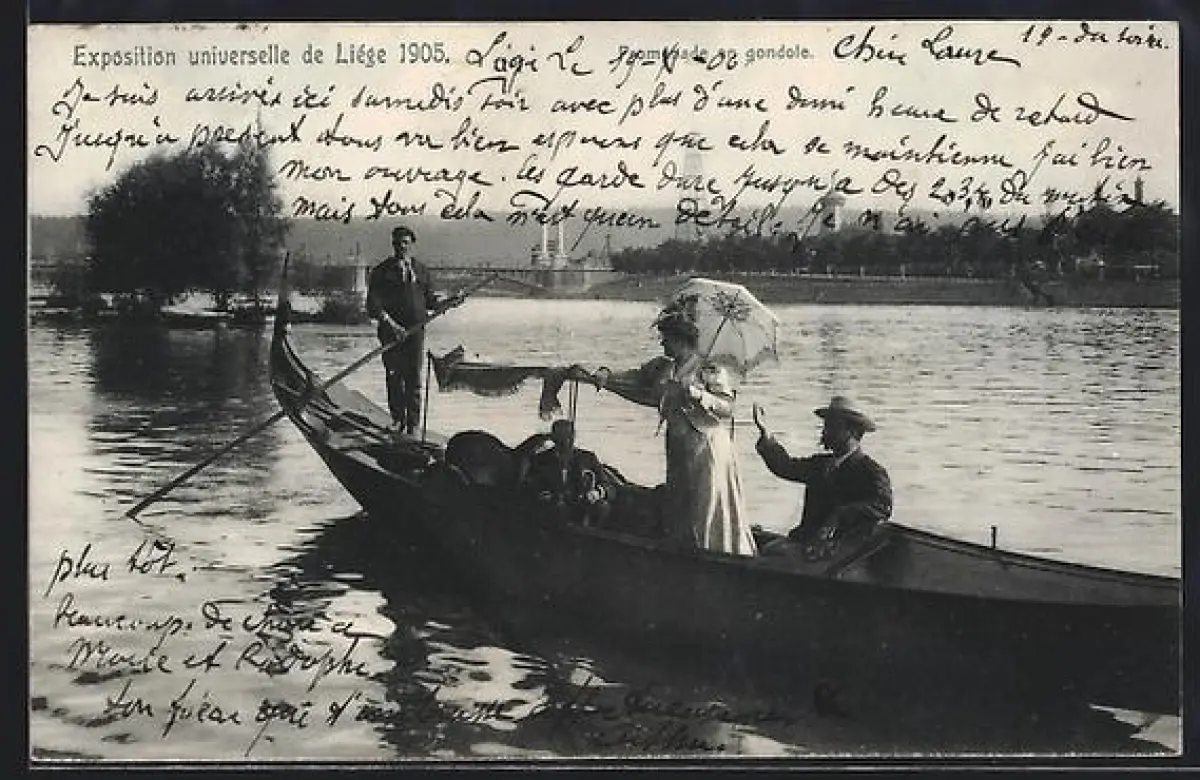 AK Liège, Exposition universelle 1905, Promenade en gondole