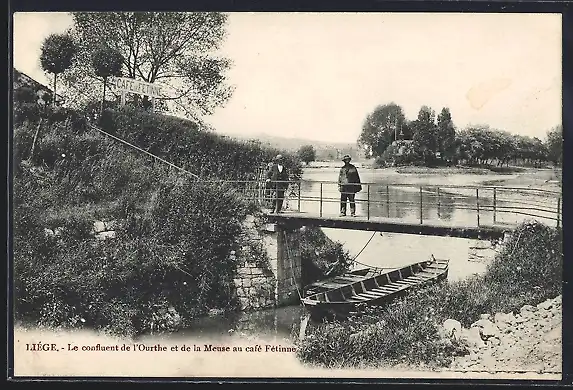 AK Liége, Le confluent de lÒurthe et de la Meuse au café Fétinne