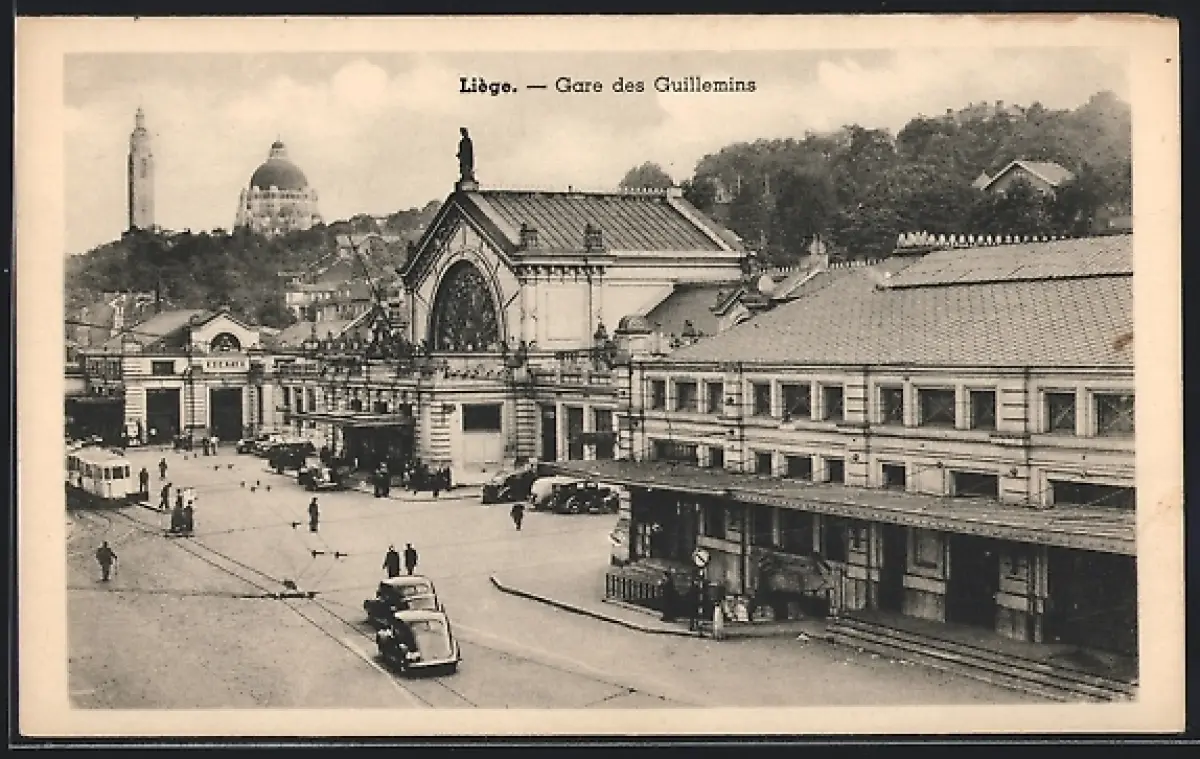 AK Liège / Lüttich, La gare des Guillemins, Strassenbahn vor dem Bahnhof