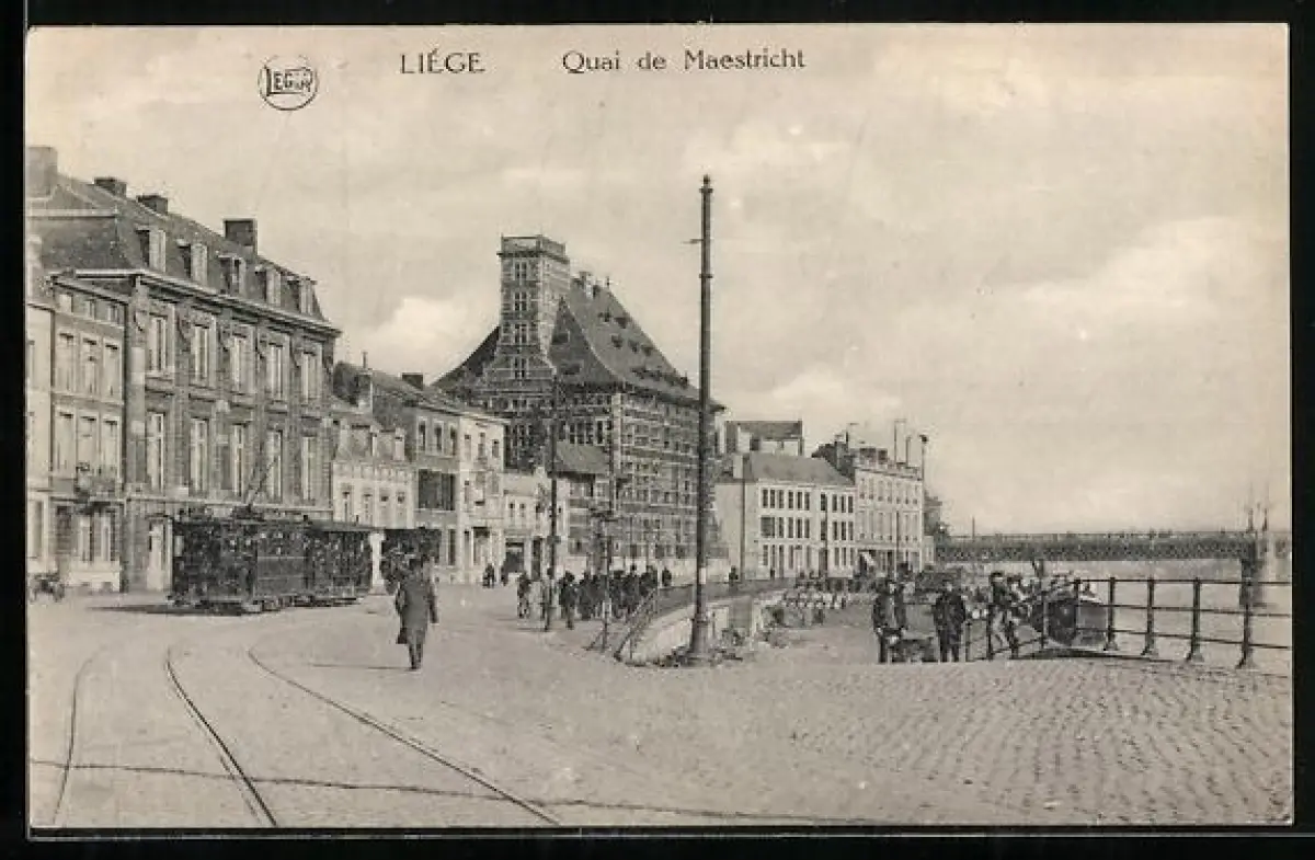 AK Liége, Musée Curtis et Pont Maghin, Strassenbahn