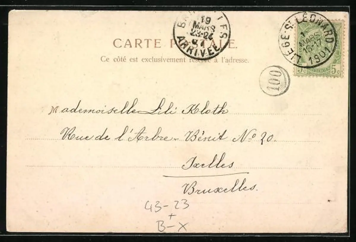 alte Ansichtskarte, gelaufen 1901, Kantenschaden oben mittig, guter Zustand