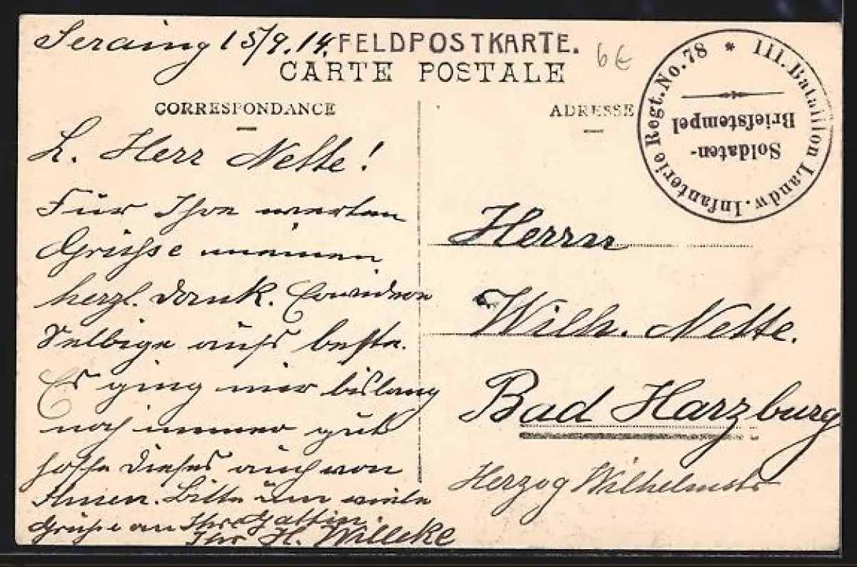 alte Ansichtskarte, gelaufen 1914, guter Zustand