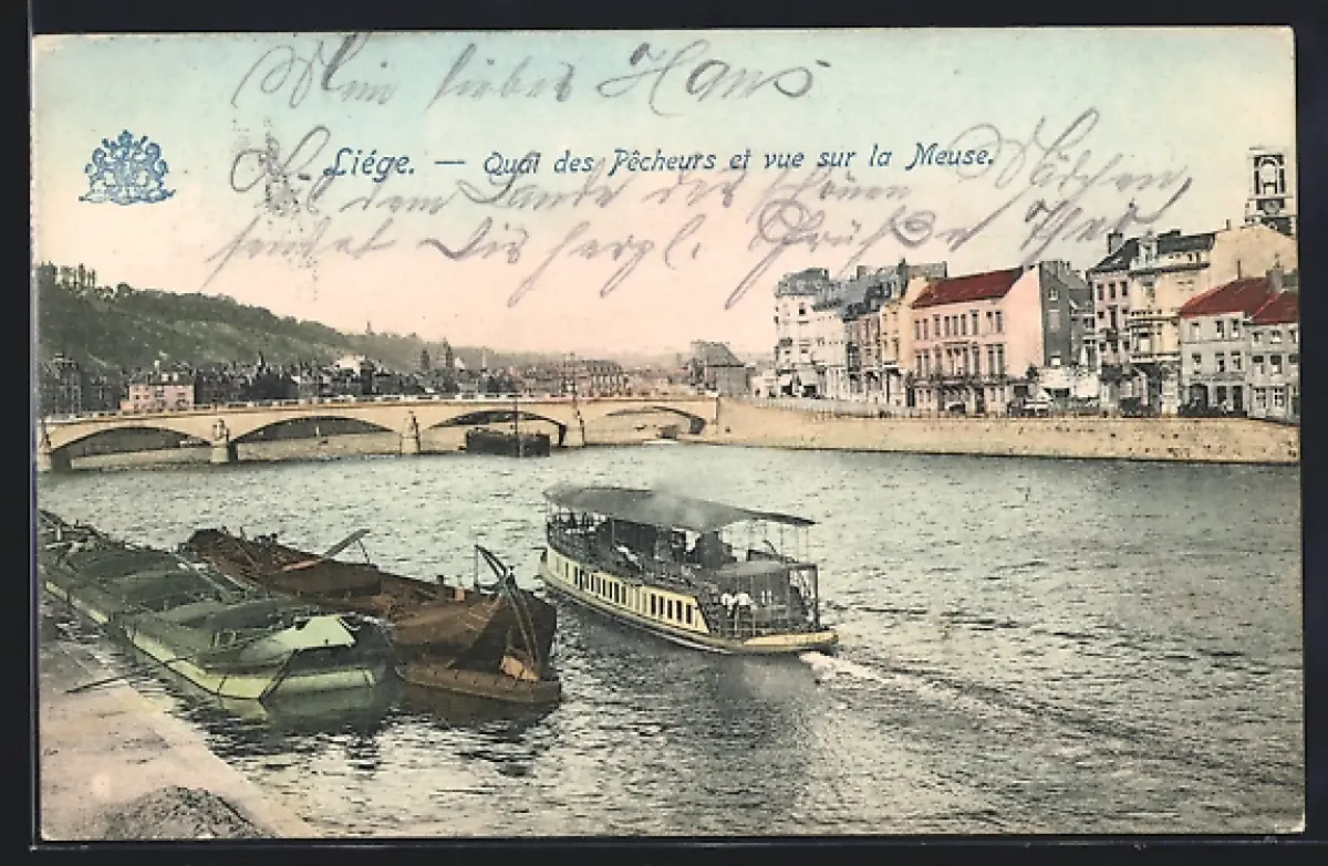 AK Liége, Quai des Pecheurs et vue sur la Meuse