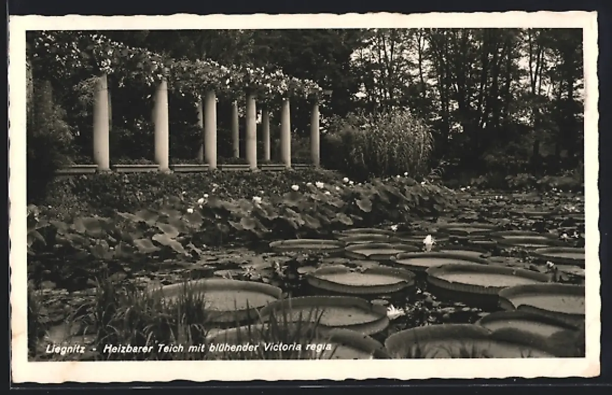 AK Liegnitz, Heizbarer Teich mit blühender Victoria regia
