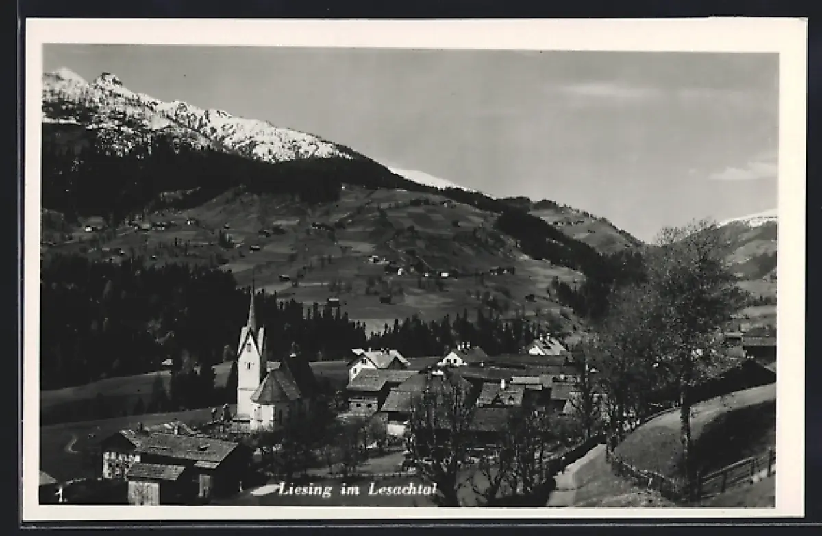 AK Liesing im Lesachtal, Totalansicht mit Bergpanorama aus der Vogelschau