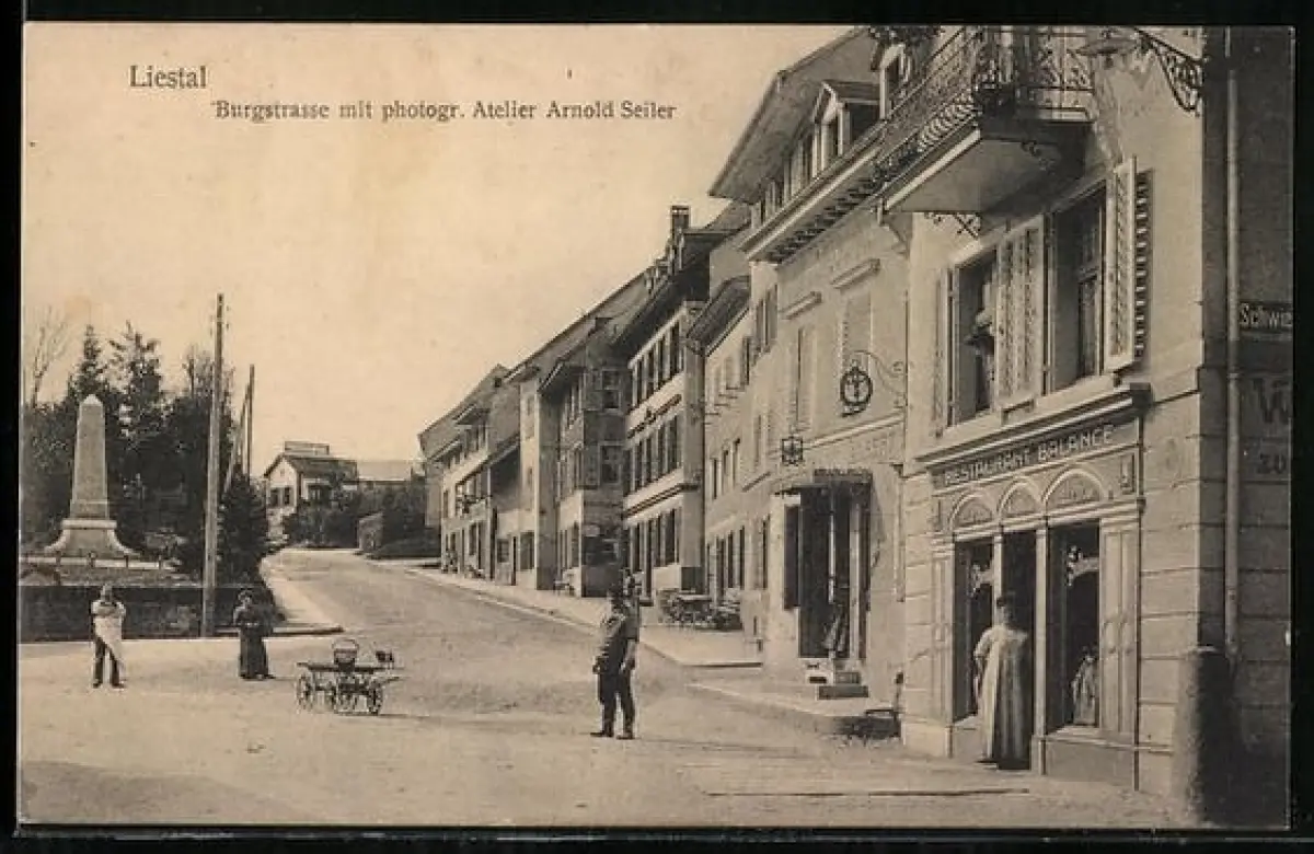 AK Liestal, Burgstrasse mit photogr. Atelier Arnold Seiler und Restaurant Balance