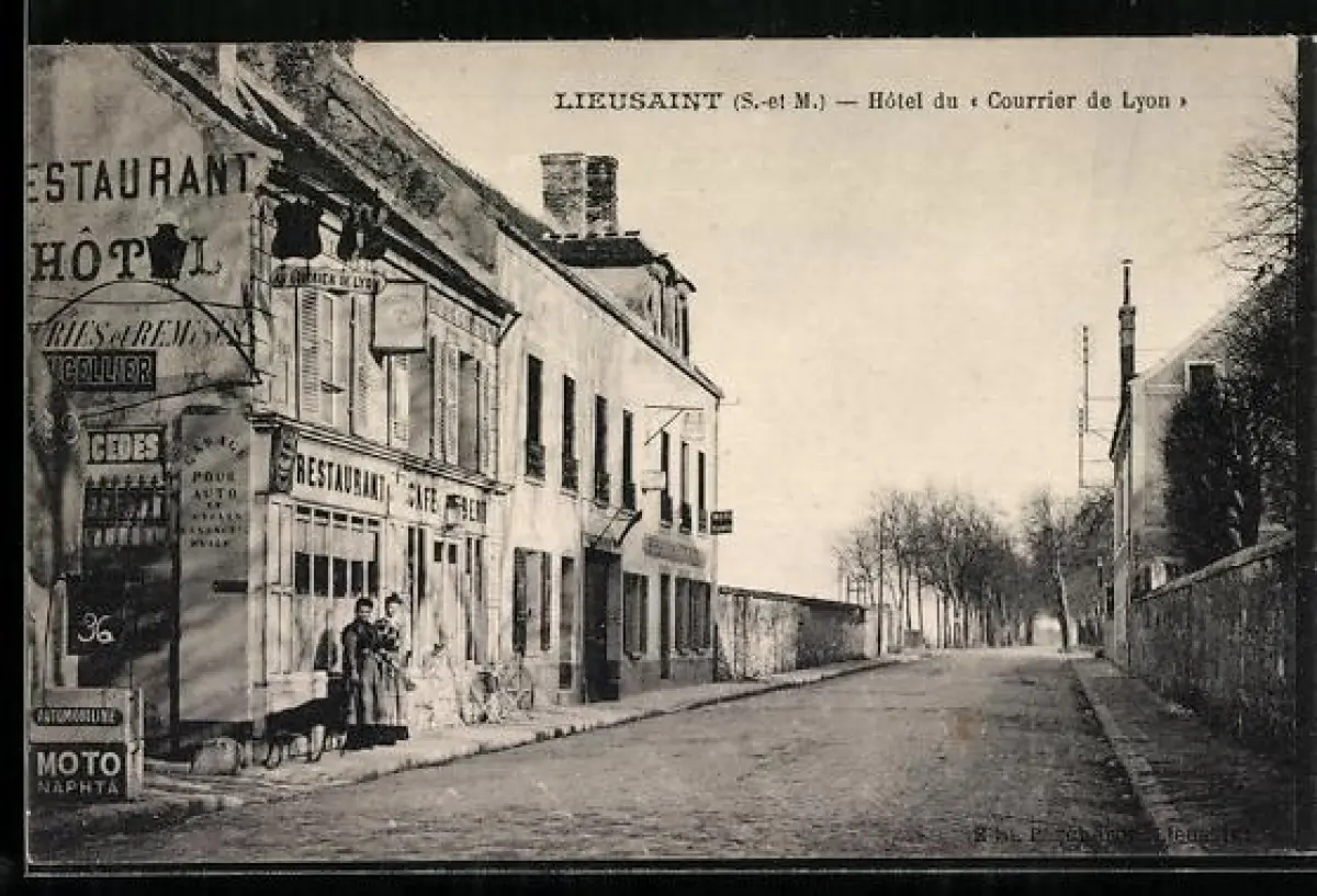 AK Lieusaint /S.-et-M., Hôtel du « Courrier de Lyon » et rue bordée d`arbres