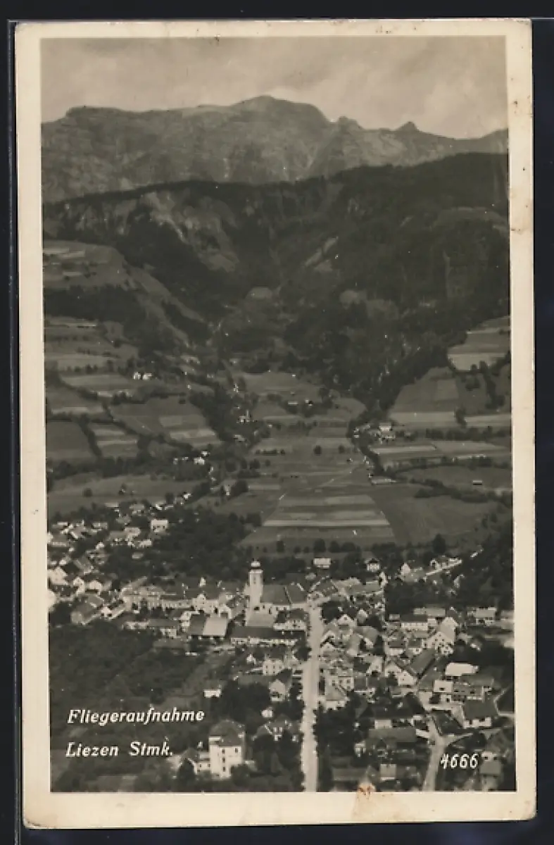 AK Liezen /Stmk., Totalansicht mit Umgebung vom Flugzeug aus