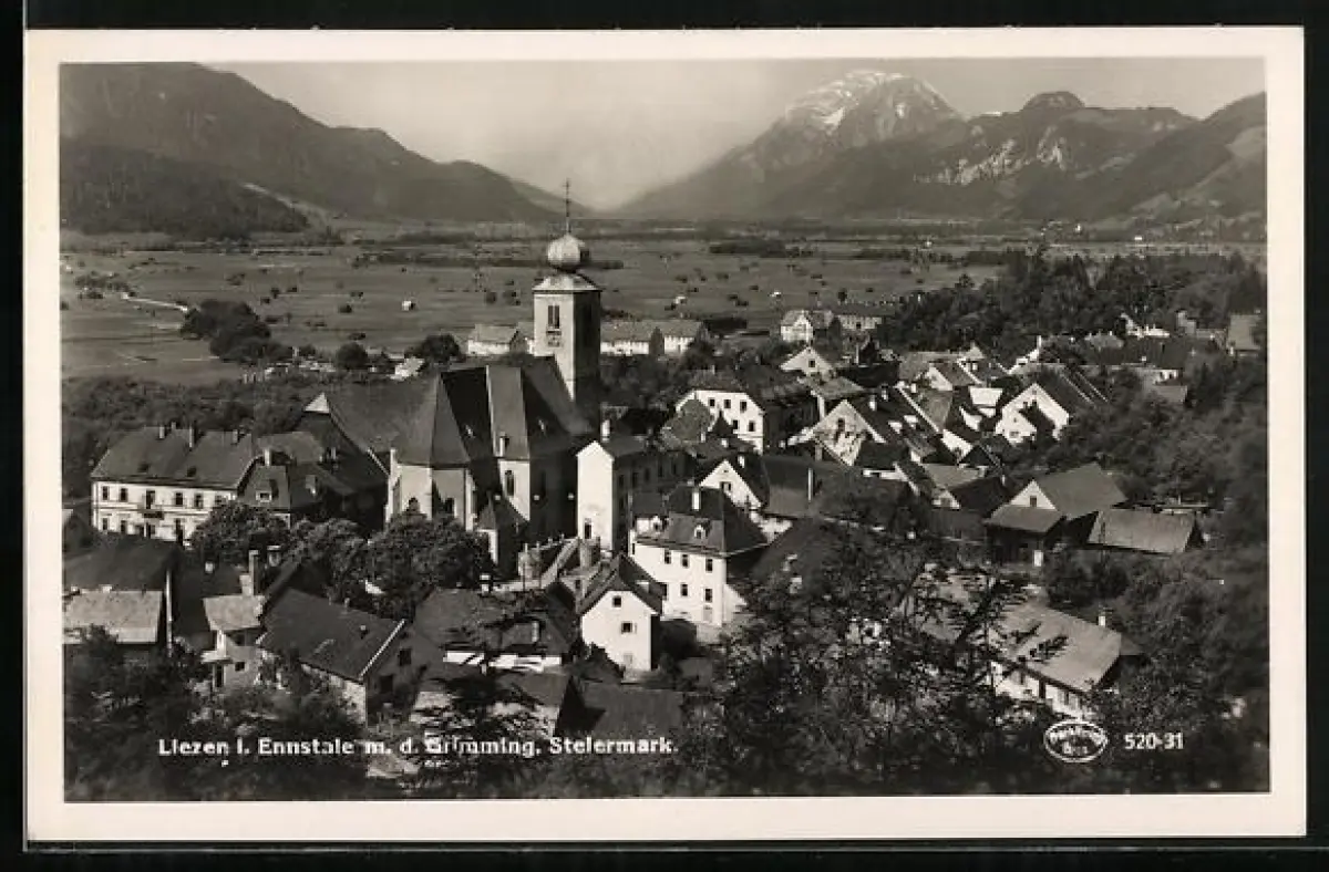AK Liezen i. Ennstale, Teilansicht mit Kirche und dem Grimming