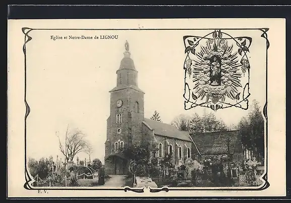 AK Lignou, Église et Notre-Dame de Lignou avec cimetière adjacente