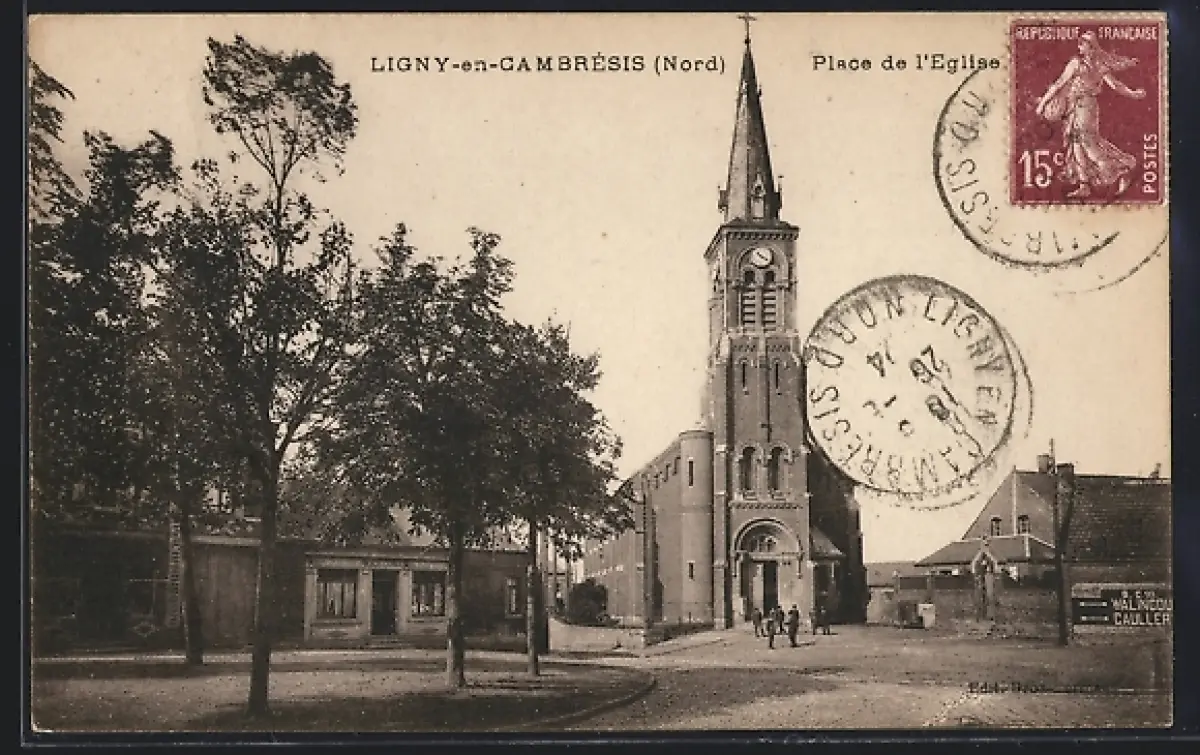 AK Ligny-en-Cambrésis /Nord, Place de l`Eglise