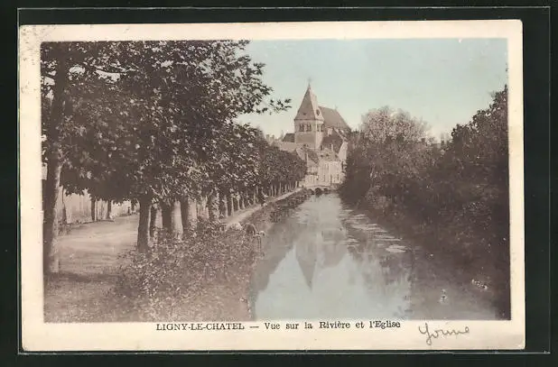 AK Ligny-le-Châtel, Vue sur la Rivière et l`Eglise