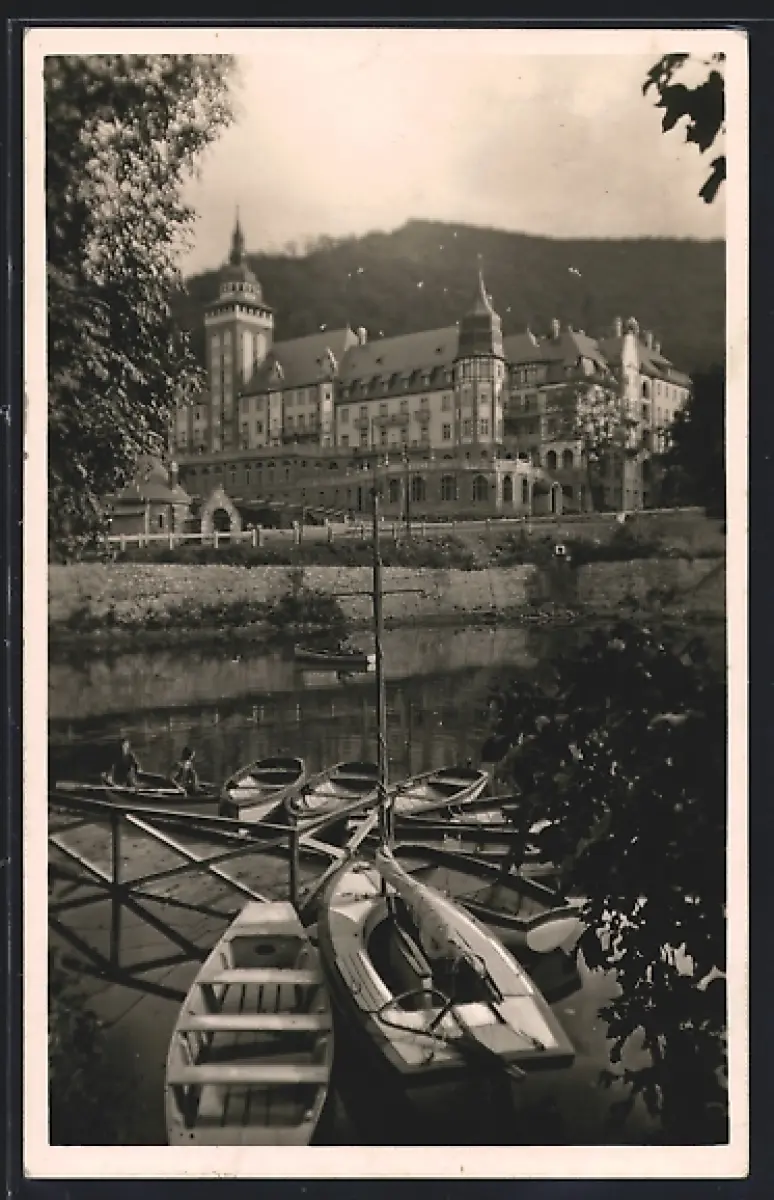 AK Lillafüred, Hotel Palota mit dem Boot-Landungsplatz