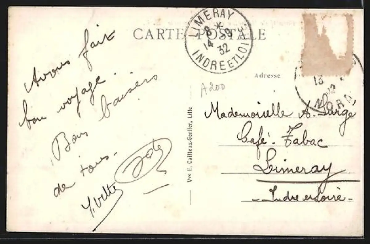 gelaufen 1932, Briefmarke entfernt, rückseitig Oberflächenschaden, guter Zustand