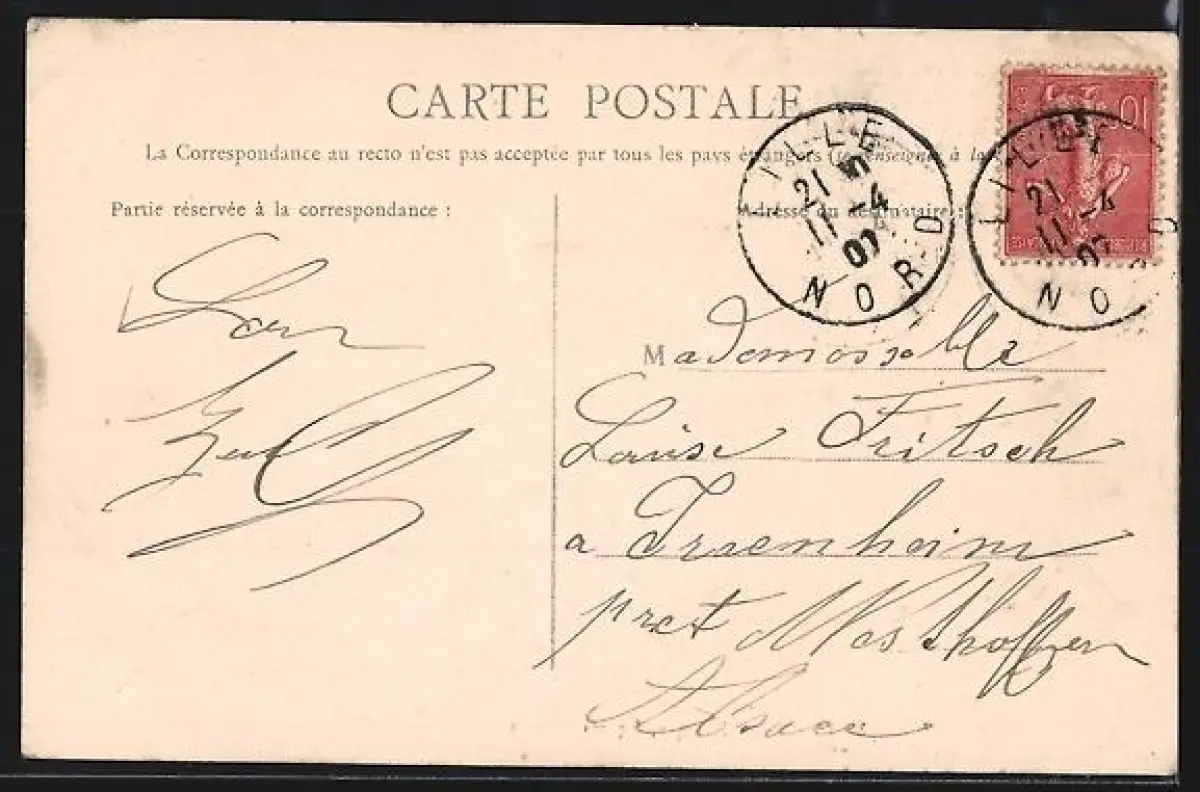 alte Ansichtskarte, gelaufen 1907, Stempelspur, guter Zustand