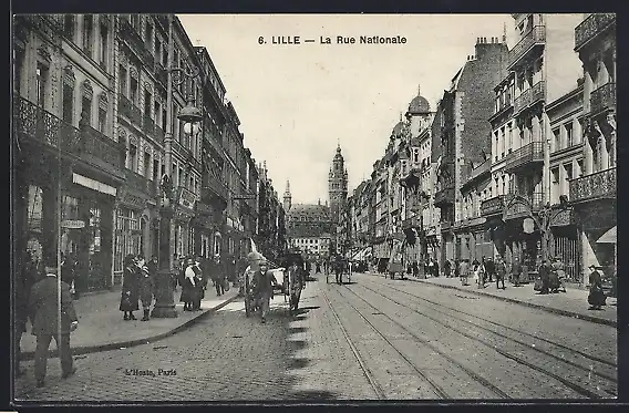 AK Lille, La Rue Nationale avec vue sur l`architecture urbaine animée