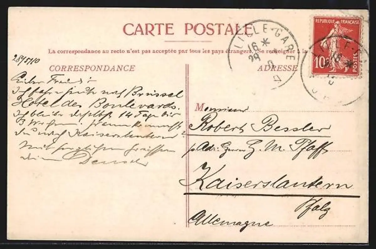 gelaufen 1910, Eckknick li. oben, Bugspuren li. oben, guter Zustand