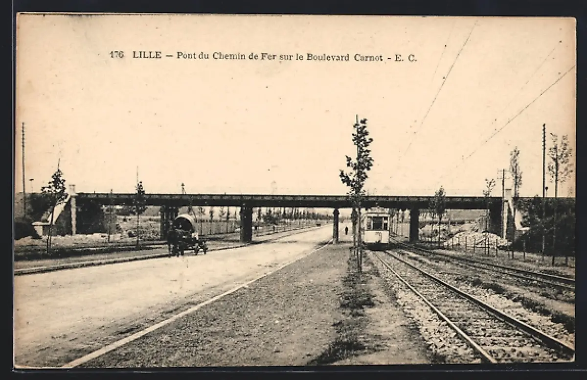 AK Lille, Pont du Chemin de Fer sur le Boulevard Carnot, Strassenbahn