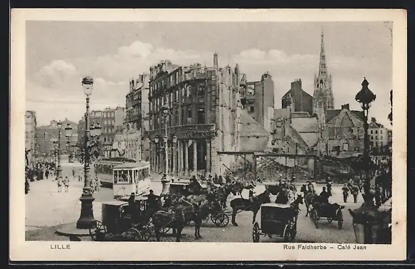 AK Lille, Rue Faidherbe, Café Jean, Strassenbahn