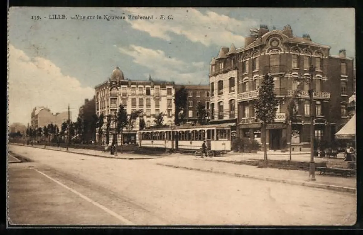 AK Lille, Vue sur le Nouveau Boulevard, Strassenbahn
