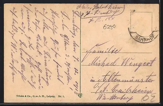 alte Ansichtskarte, gelaufen, Briefmarke entfernt, Eckknick unten re., guter Zustand