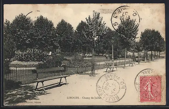 AK Limoges, Champ de Juillet avec bancs et promenade arborée
