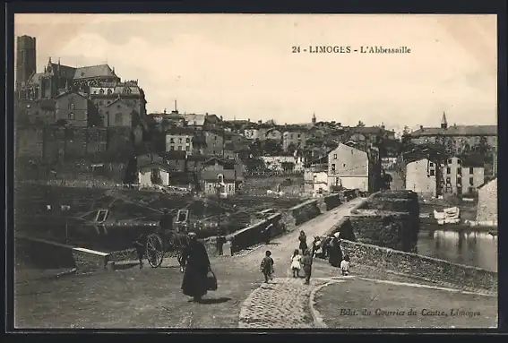 AK Limoges, L`Abbessaille avec des habitants sur le pont et vue sur la ville