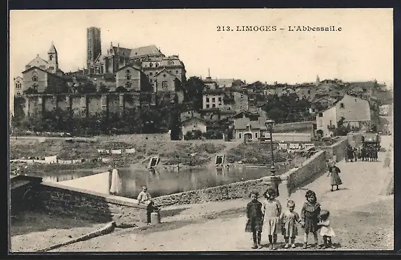AK Limoges, L`Abbessaille et vue sur la ville avec des enfants au premier plan