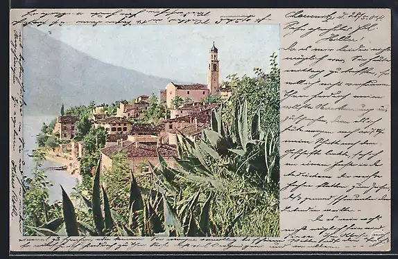 AK Limone /Gardasee, Panorama mit Blick nach der Kirche