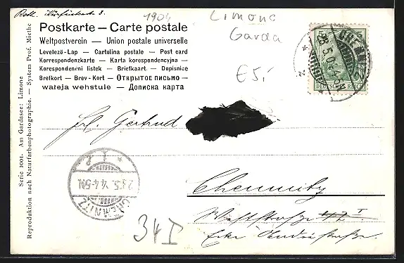 alte Ansichtskarte, gelaufen 1904, guter Zustand
