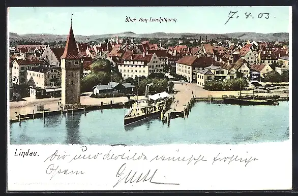 AK Lindau / Bodensee, Blick vom Leuchtturm auf den Hafen
