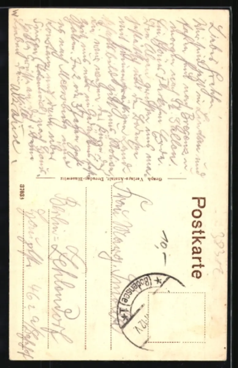 alte Ansichtskarte, gelaufen, Briefmarke entfernt, guter Zustand