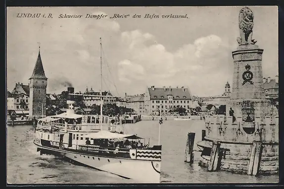 AK Lindau i. B., Dampfer Rhein den Hafen verlassend