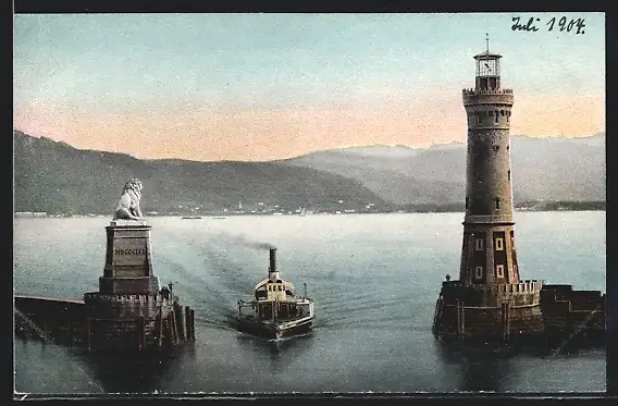 AK Lindau i. B., Dampfer bei der Hafeneinfahrt