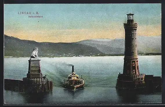 AK Lindau i. B., Dampfer bei der Hafeneinfahrt