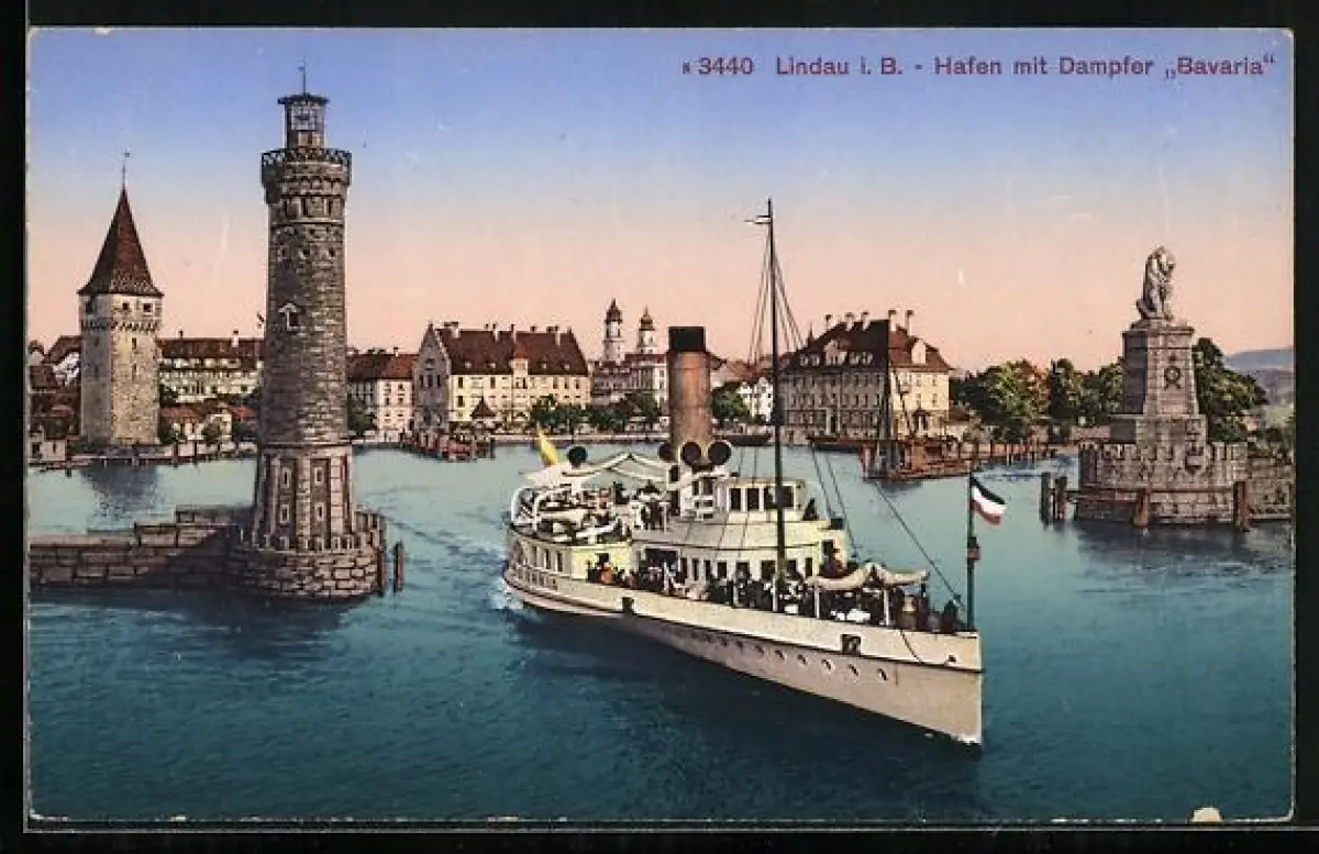AK Lindau i. B., Hafen mit Bodensee-Dampfer Bavaria