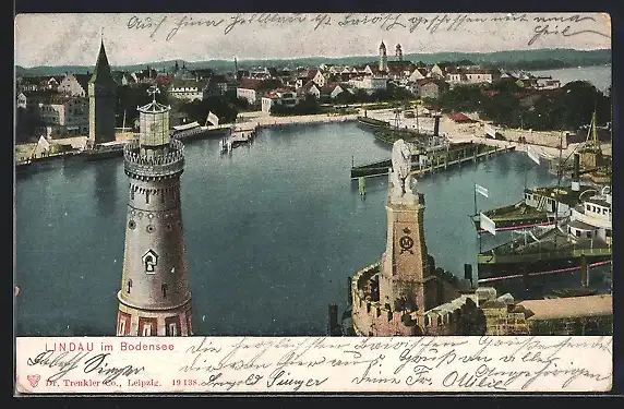 AK Lindau i. B., Hafen mit dem Leuchtturm