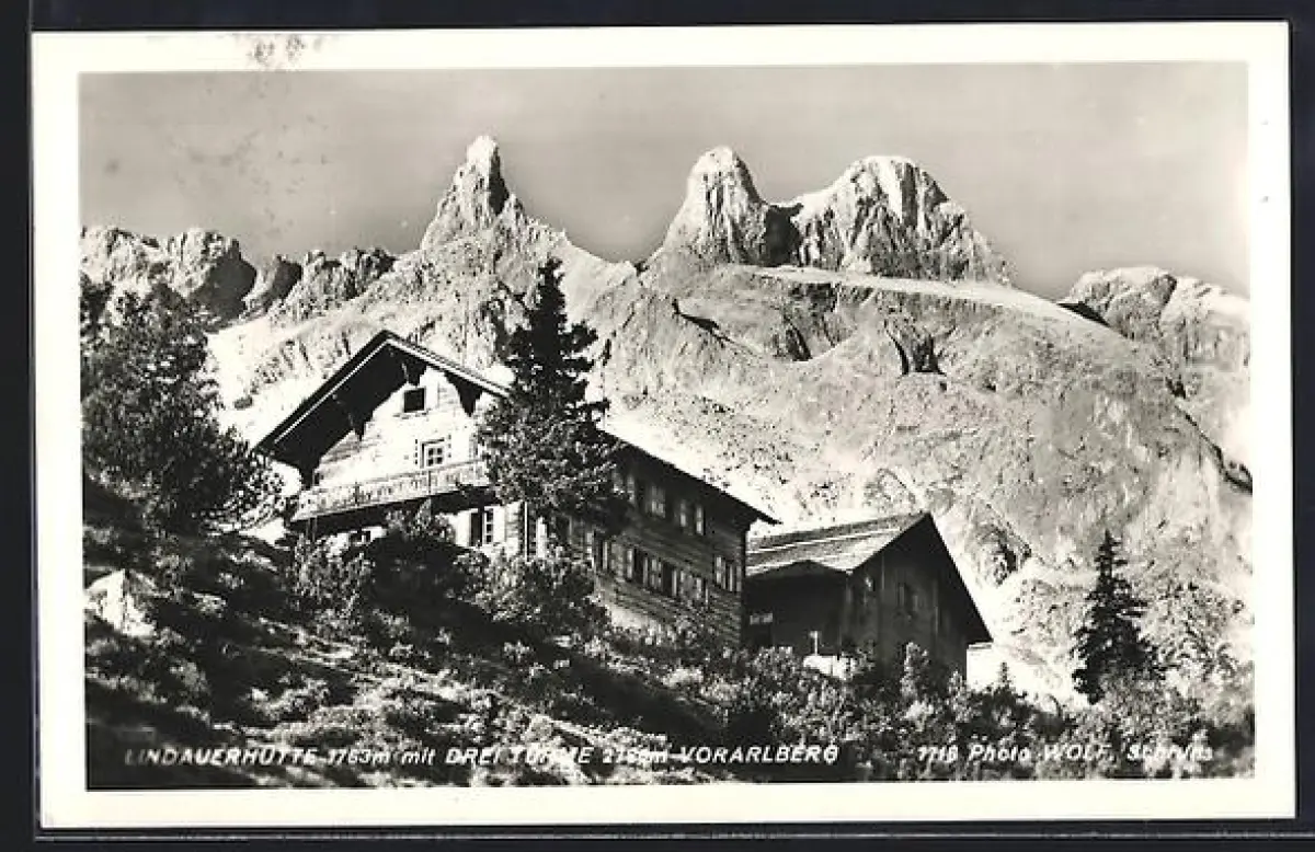 AK Lindauerhütte /Vorarlberg, Berghütte mit Drei Türme