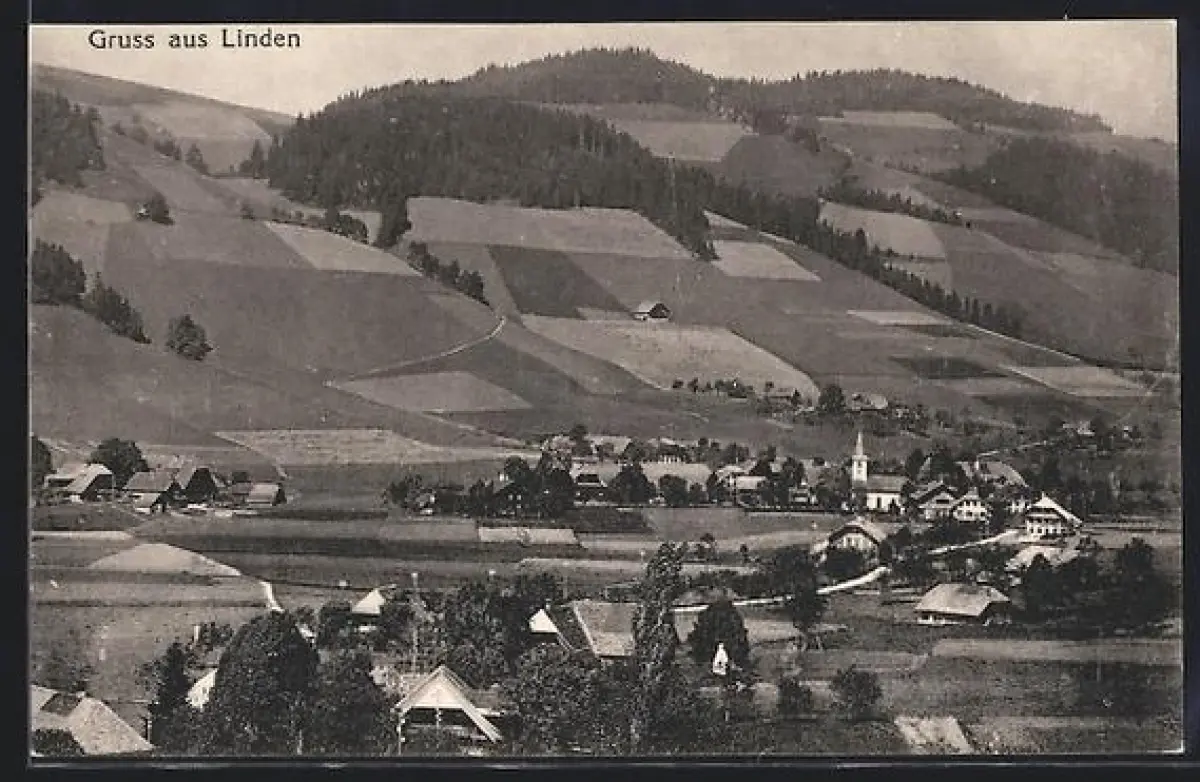 AK Linden, Ortsansicht aus der Vogelschau gegen den Berghang